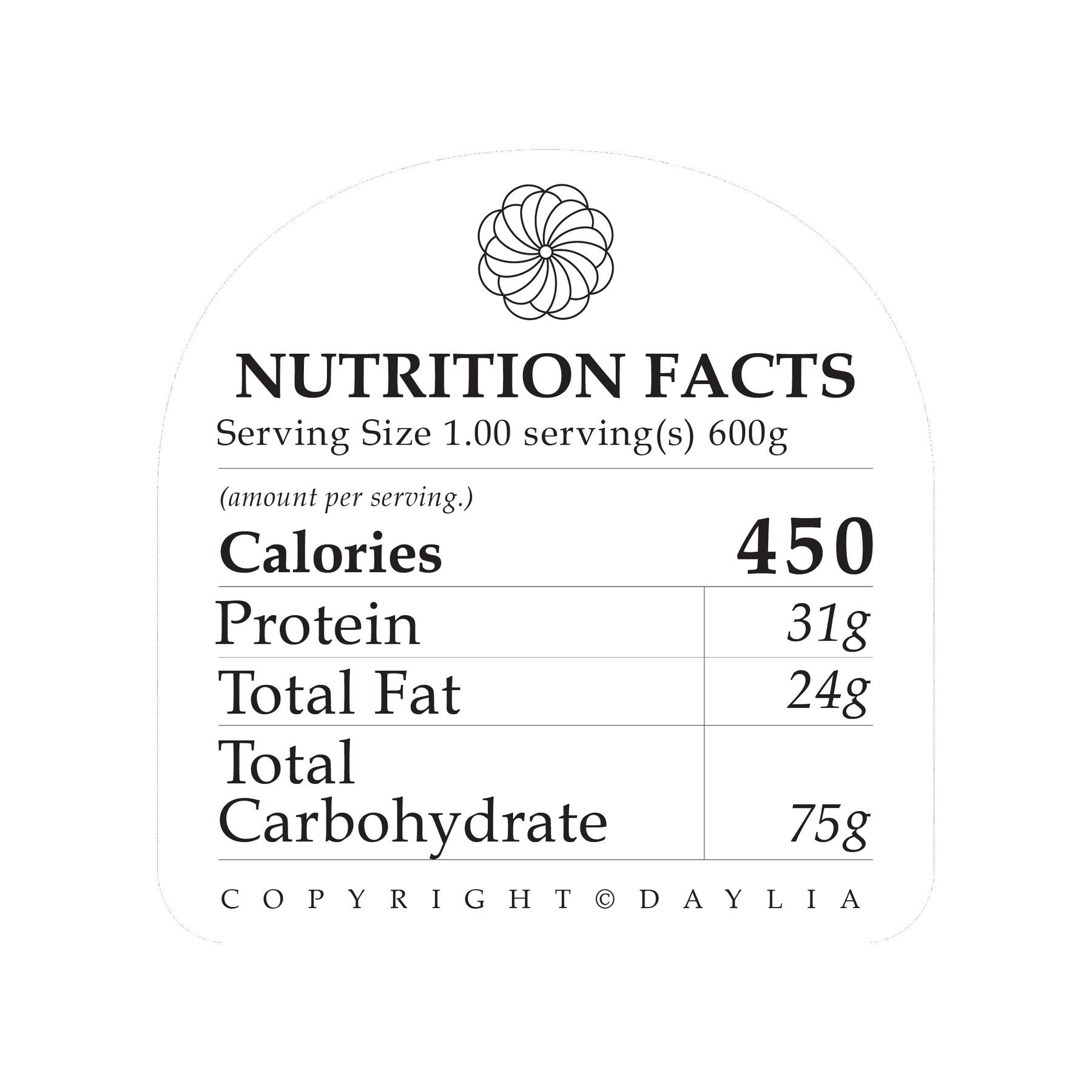 Serving Size 1.00 serving(s) 600g / Calories: 450絲苗白飯Rice